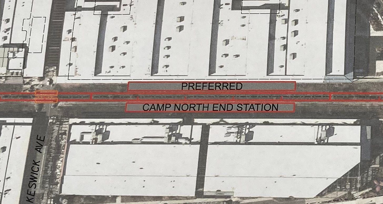 The original plan called for 10 stations, from uptown’s Gateway Station to Mount Mourne in Iredell County. Planners appear to be taking a serious look at adding Camp North End as a stop — so much so that it is now listed as a potential station on planning maps: