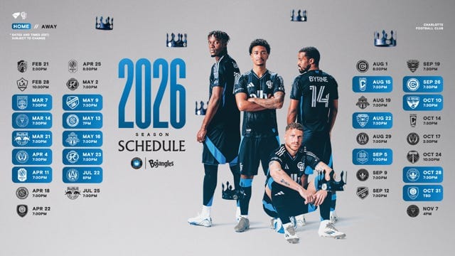 (Graphic of Charlotte FC’s 2026 schedule courtesy of Charlotte FC.)