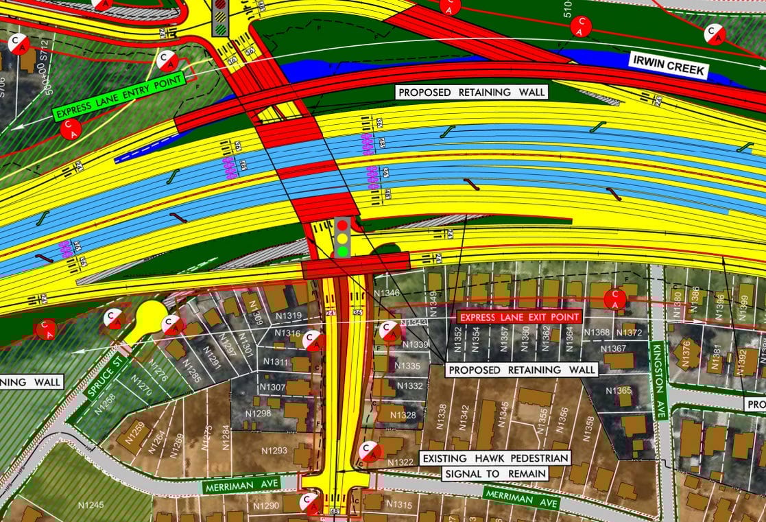 And here is how the new express toll lanes would encroach on the neighborhood: