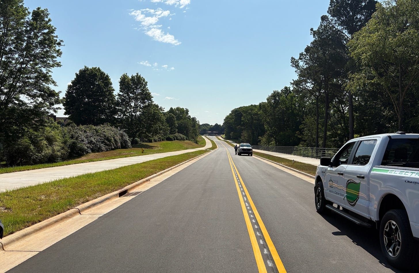 The plan would fund new roads — similar to this extension of Bryant Farms Road in Ballantyne that opened this year — and much of the money would go toward sidewalks, bike lanes and other road-related projects. (Photo: Tony Mecia/The Charlotte Ledger)