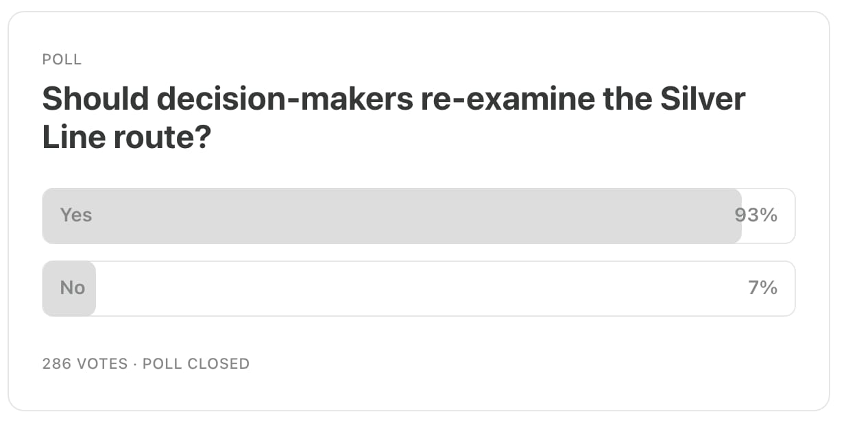 We also asked readers if CATS should re-examine the Silver Line corridor. The results are not scientifically valid, but a large majority of the 286 people responded βyesβ: